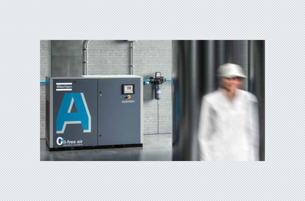 precisione o settori analoghi, la qualità dell'aria è fondamentale per il processo di produzione e il prodotto finale. I compressori oil-free di Atlas Copco eliminano i rischi di contaminazione da olio.